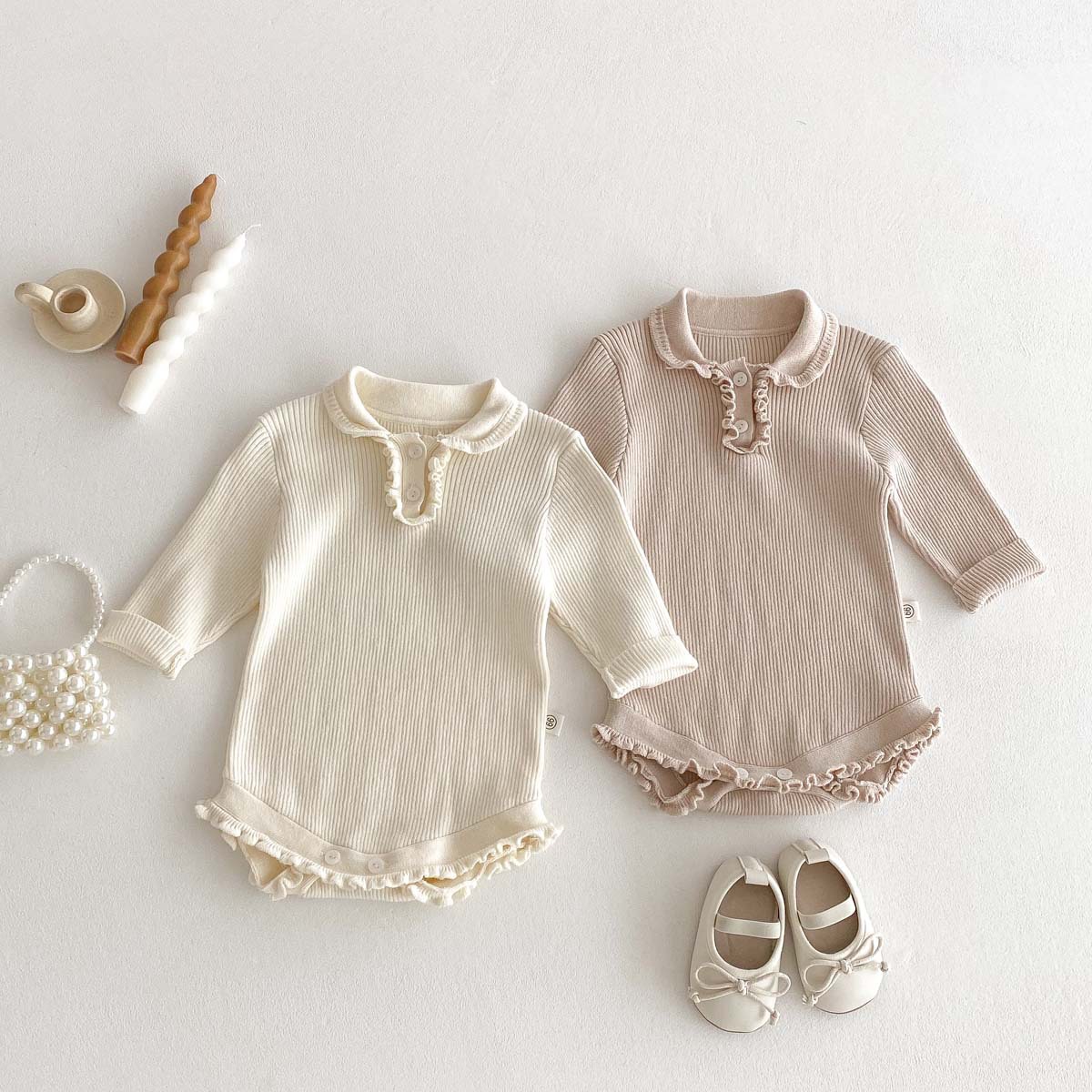 越境子供服 幼児服 新生児服 ドールカラーロンパース ベビーワンピース 春秋 長袖 韓国風