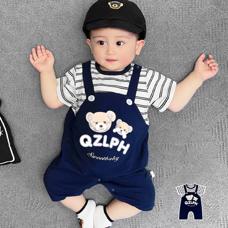 赤ちゃん服の夏のスーツ韓国版の男の子の夏服の連体服の偽の2つの洋風の外は夏の熊の顔を着ます。