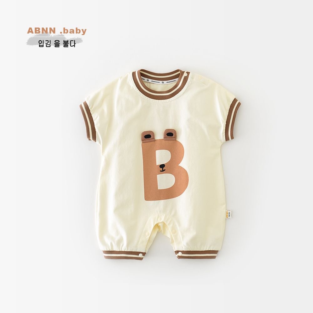 ベビー服 夏用 薄手 百日祝い 男女兼用 ベビーロンパース 新生児 漫画風クマ柄 ロンパース 綿素材