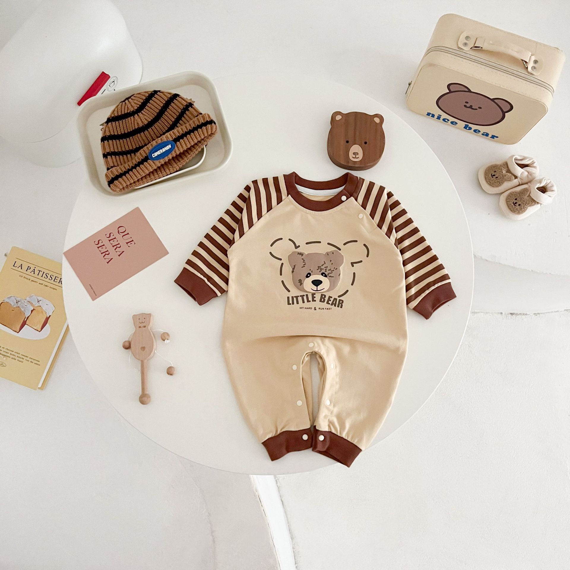 ベビーローブ 2025 春の新製品男性と女性の赤ちゃんかわいいクマプリントヨーロッパとアメリカのベビーロンパースジャンプスーツ