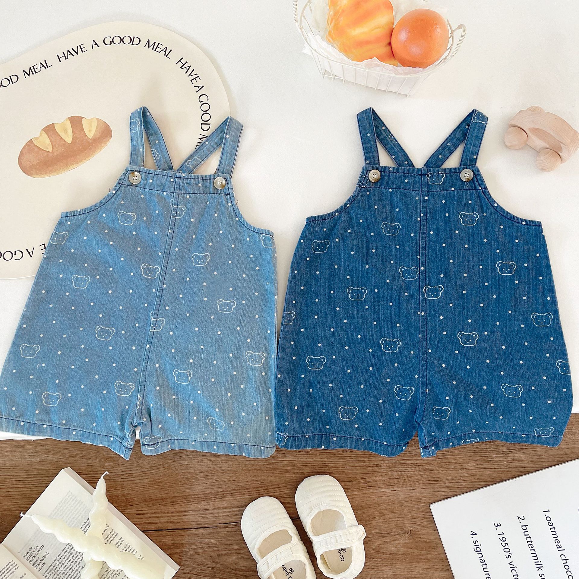 2025夏の新型韓国版ins童装男女赤ちゃんかわいいベアープリント連体服デニムバックパンツ