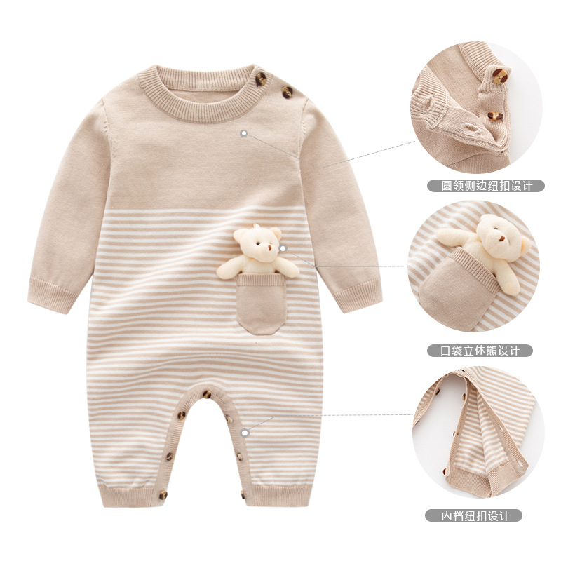 ベビーロンパース、ベビー服、幼児服、おしゃれなストライプニットセーター、ベビーロンパース、厳選