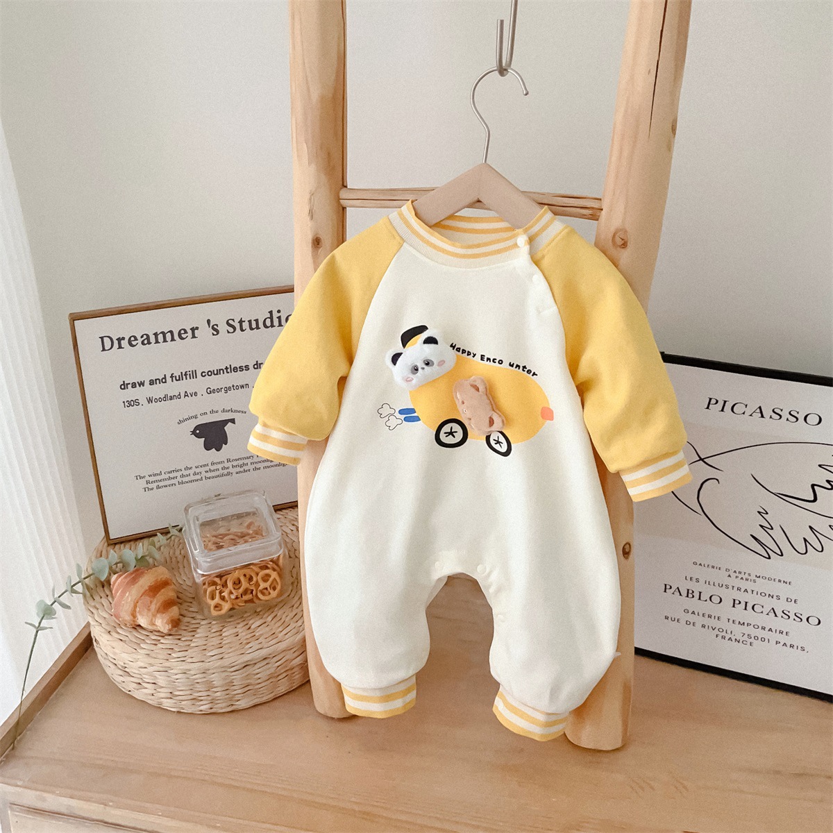 2024ベビー春服萌えアニメ熊立体装飾ワンピース新生児長袖外出服