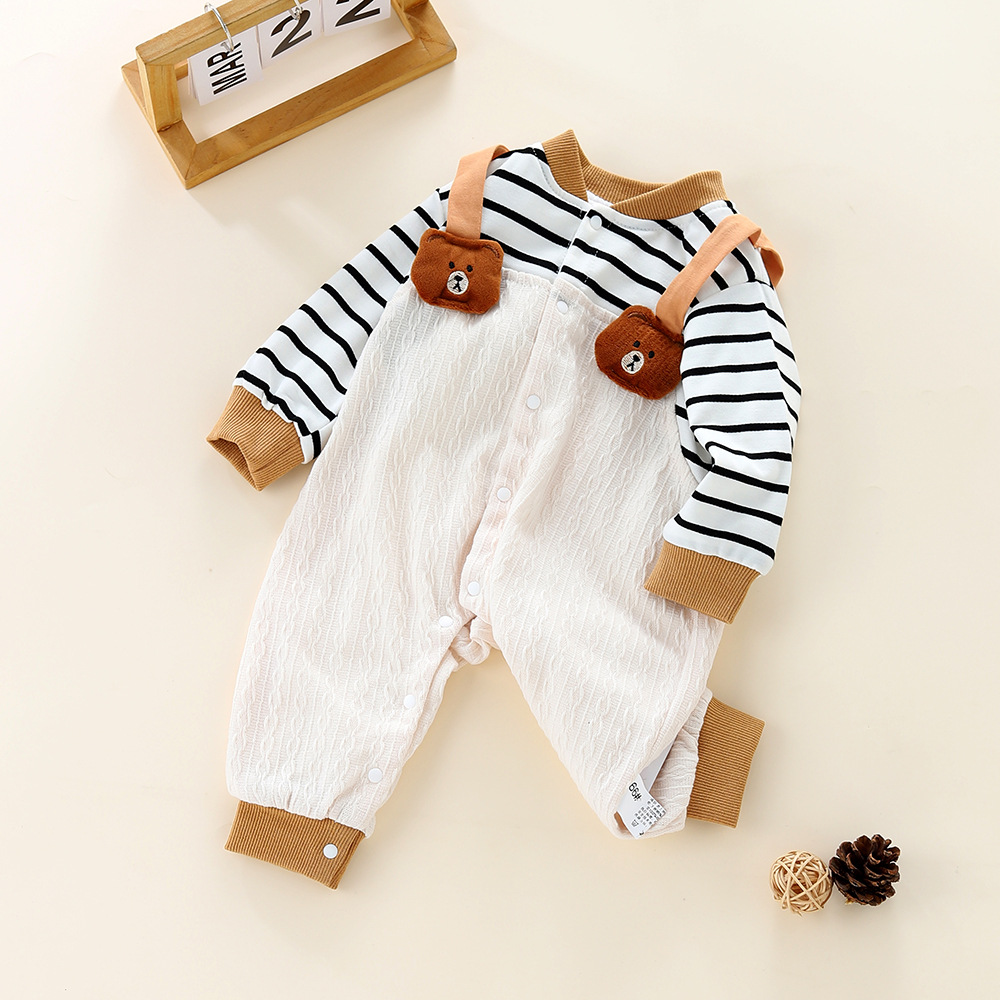 赤ちゃんのストライプの熊の連体の服の韓国版の春と秋の項の男女の赤ちゃんの超萌えの洋気のinsは外出して服を登ります。
