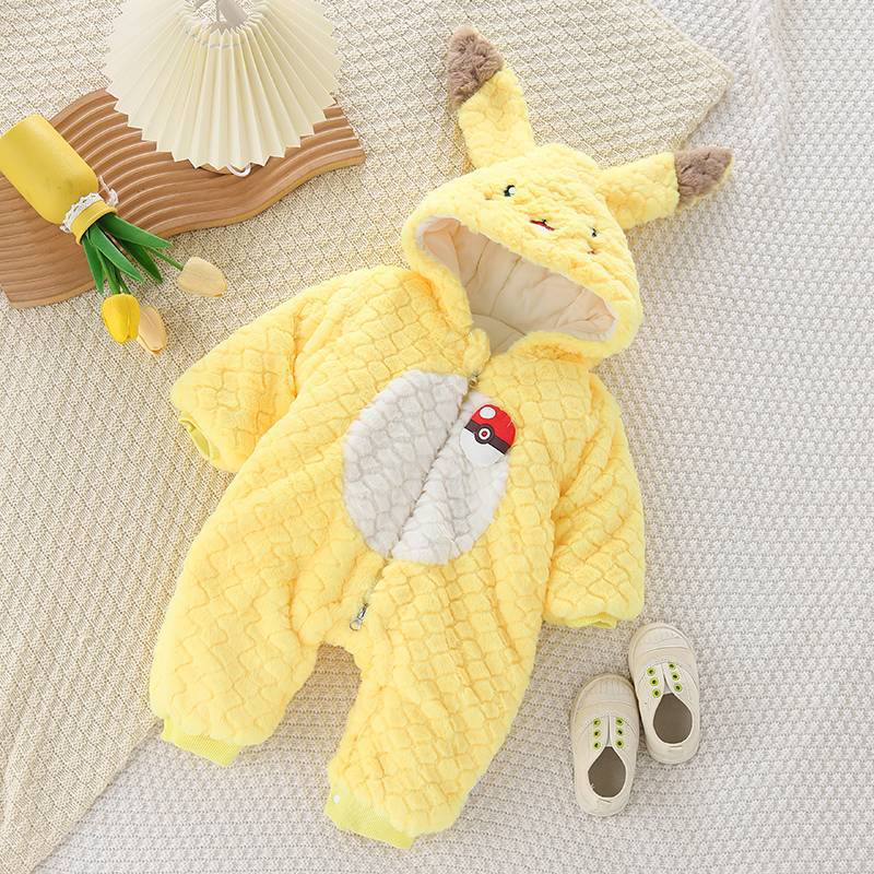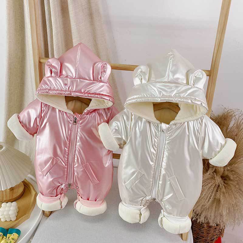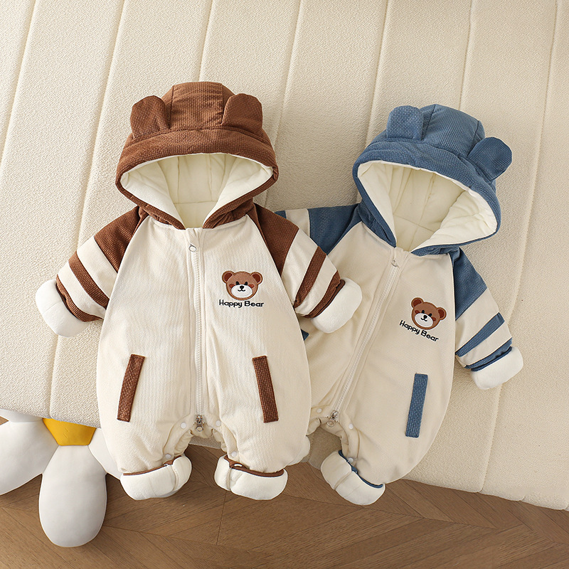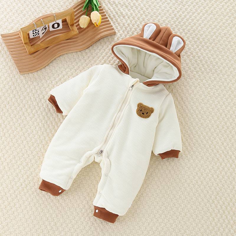 2024冬の赤ちゃんの洋気はベアーのジッパーをつなぎ合わせて保温してかわいい連体の服を厚くする
