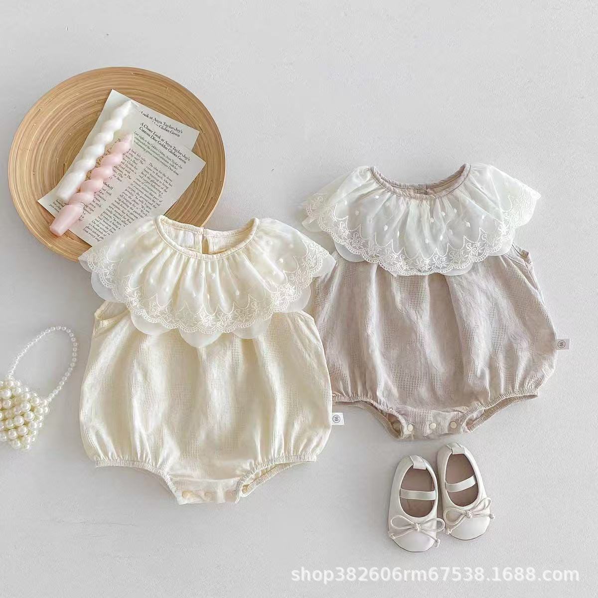 2024夏服の新型女の赤ちゃんの子供の襟の純色の三角の服のかわいい新生児の薄いタイプのお尻の服は服を登ります。