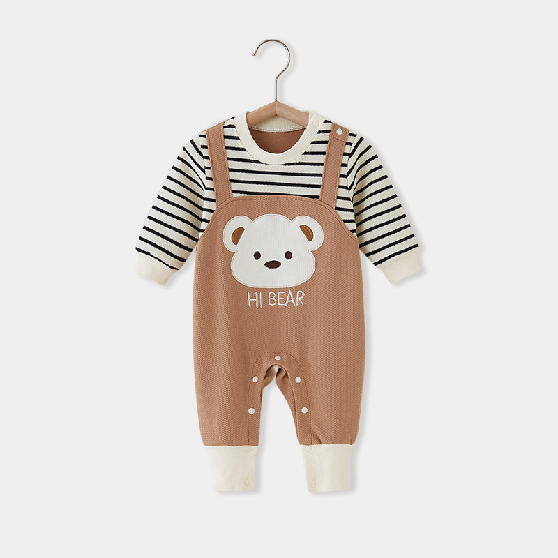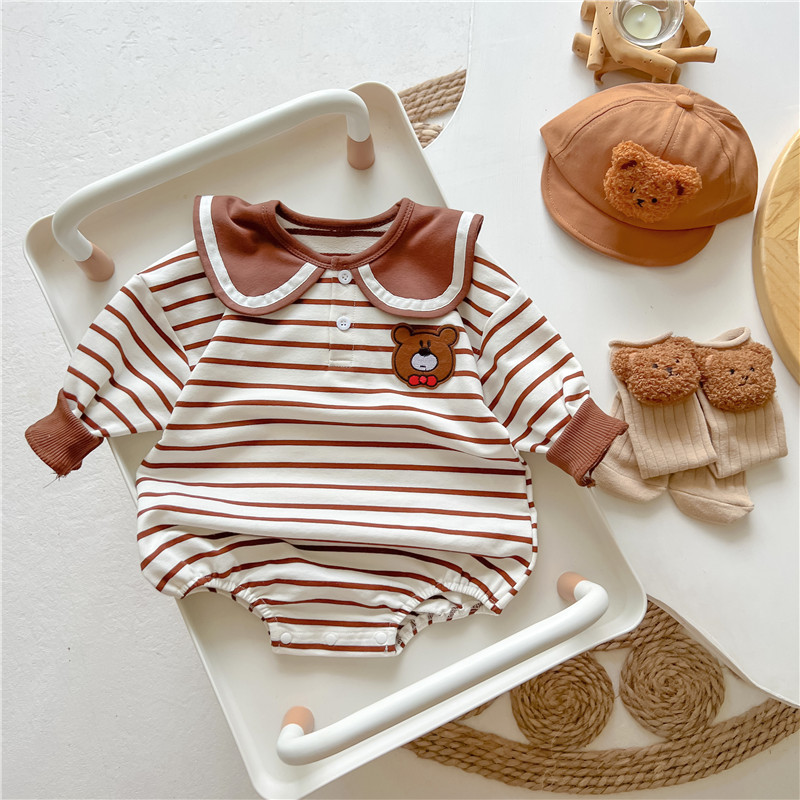 Ins乳幼児連体服春秋韓国版男女赤ちゃん純綿赤ちゃん熊刺繍外着長袖