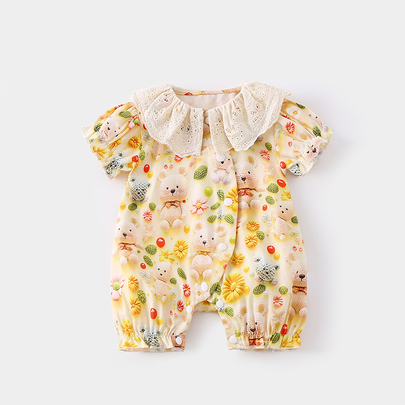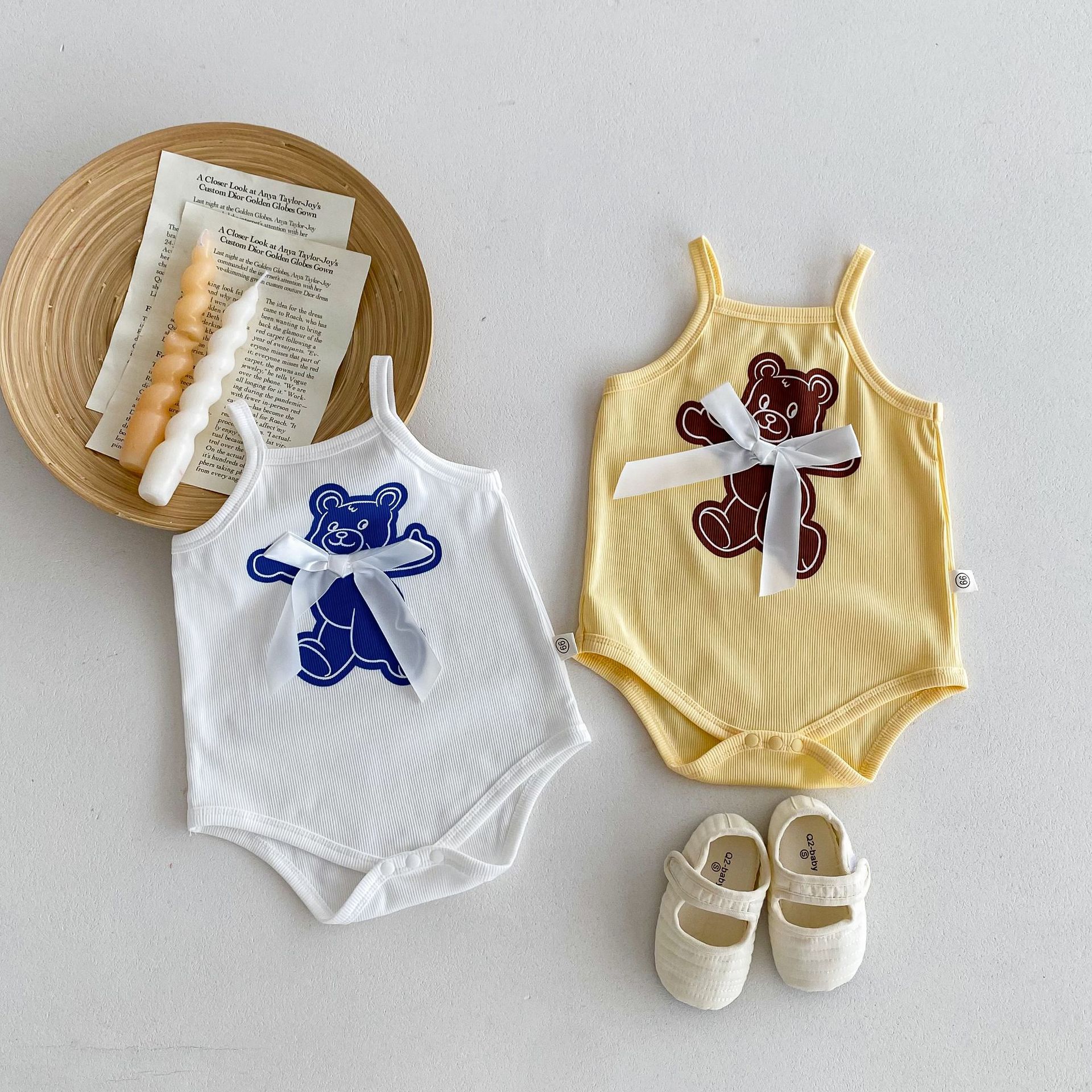 ベビー服夏の薄手のワンピース漫画の熊の蝶結びの哈衣2025の新型の男女の子供のお尻の服