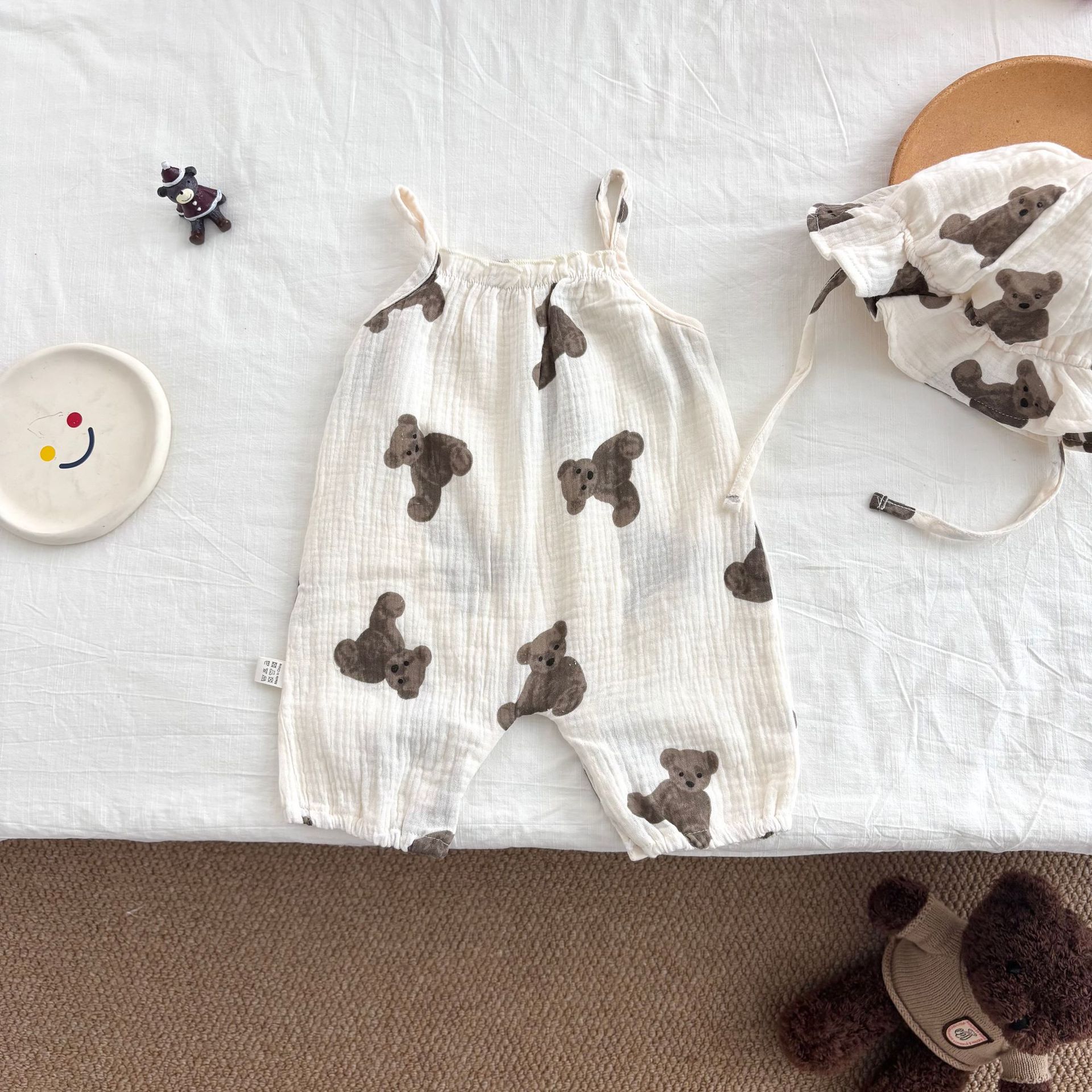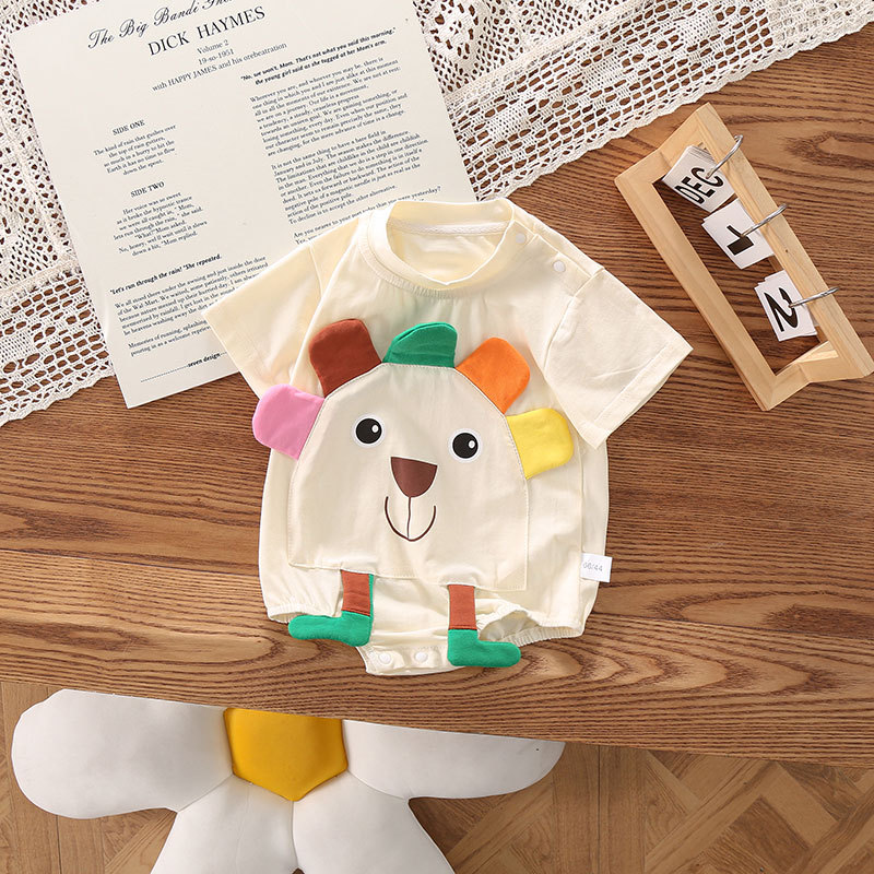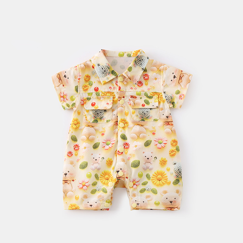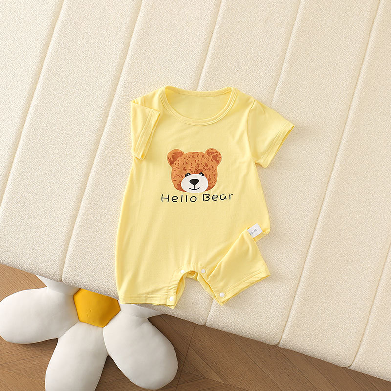ベビー服、夏用薄手ベビージャンプスーツ、クマちゃん韓国風かわいい男の子服、生後100日