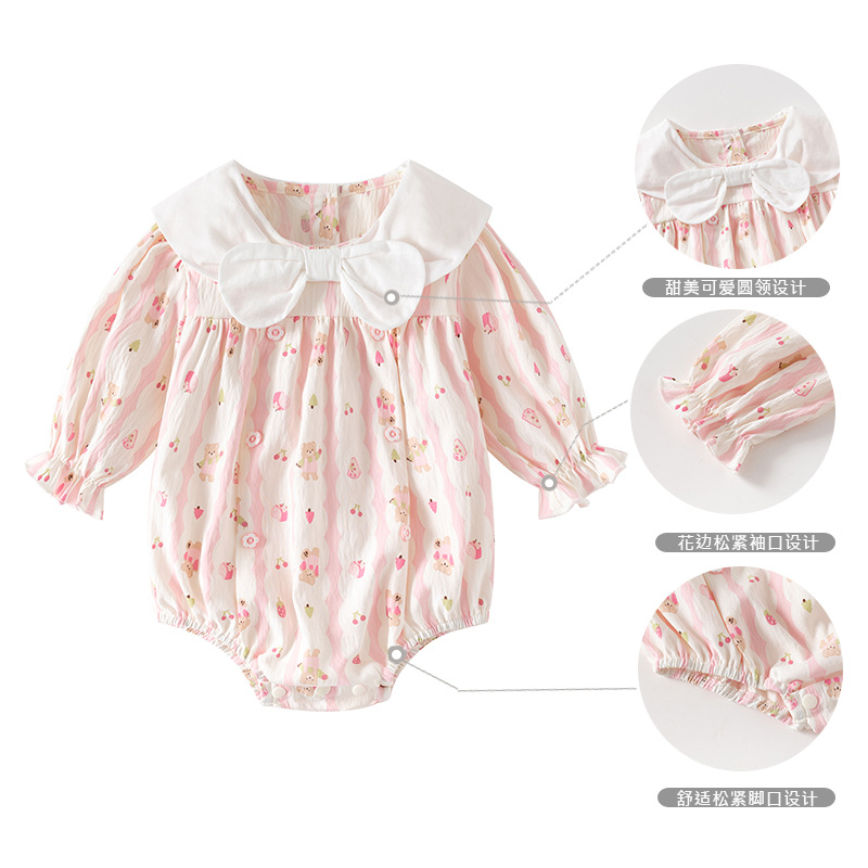 春と秋の赤ちゃんのお尻の服の新型の春の服の熊の子供の襟の女の子の連体の服のかわいい百日の歳の服