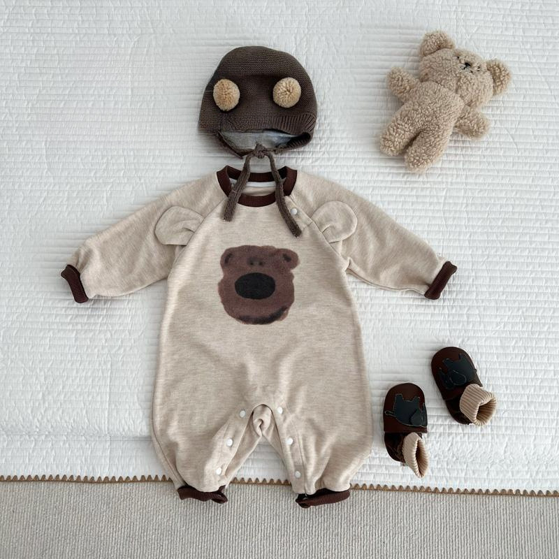 2025 秋の新作ベビージャンプスーツ韓国スタイル超かわいい新生児漫画クマのお出かけ服ベビーローブ