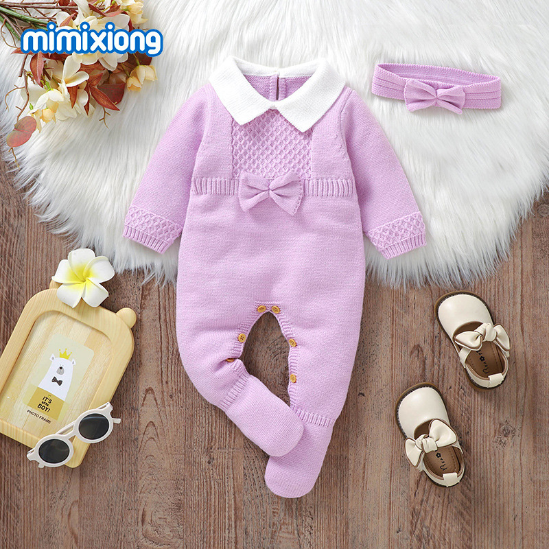 2025 秋の新スタイル女の赤ちゃん人形襟ニットジャンプスーツ幼児かわいい毛玉ロンパースセーター