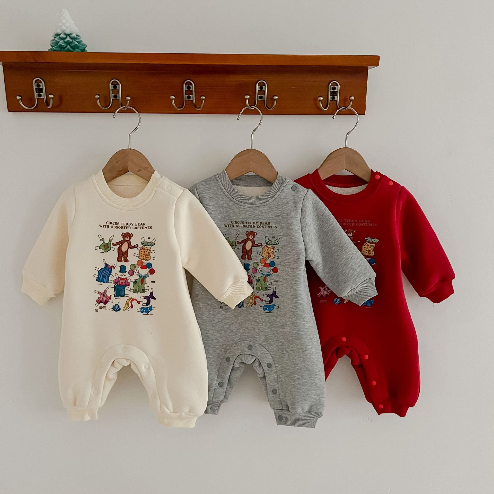 ベビー服 秋冬 薄手フリース 厚手ワンピース綿服 男の子用 小熊柄綿服 新生児外出着 冬用