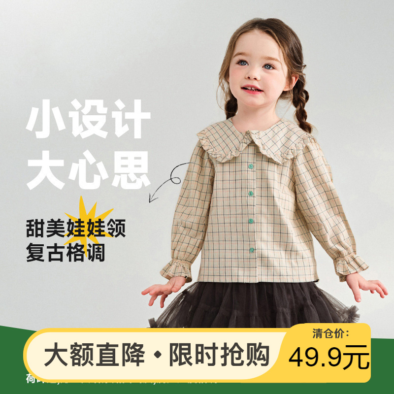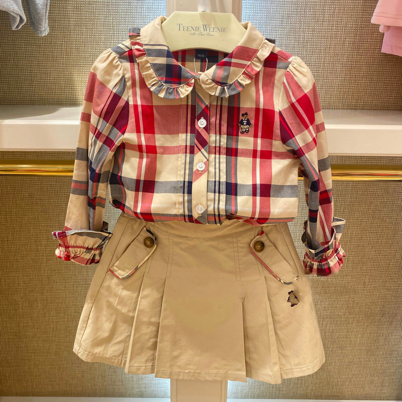 童贝子供服2025秋新作女の子シャツ クラシックチェック柄子供ファッション万能ドールカラートップス