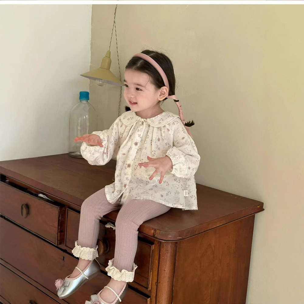 麦畑シーズン 2025 春と秋の新作韓国子供服女の子レースドールシャツ子供用フラワーシャツ