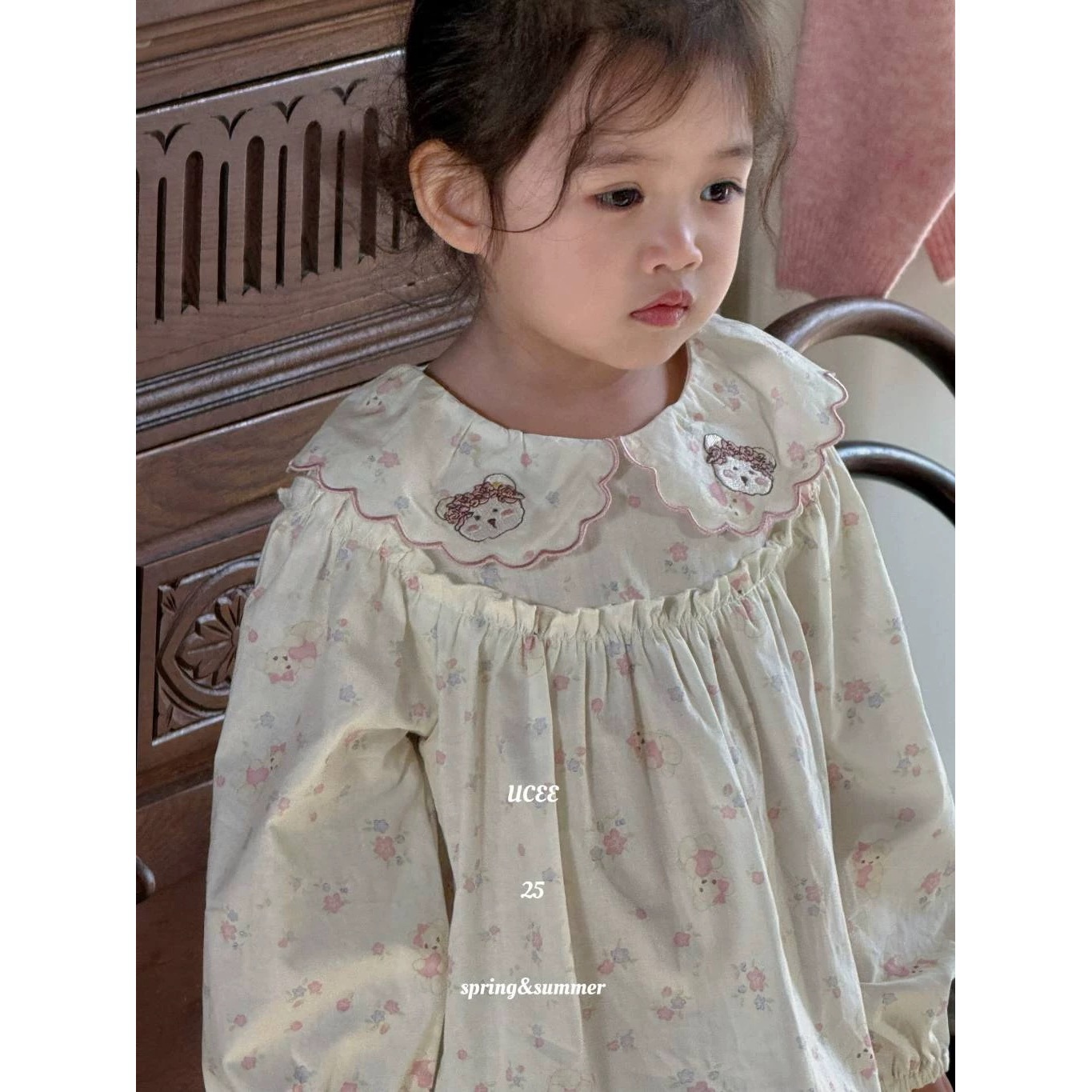 韓国子供服女の赤ちゃん人形襟シャツトップス 2025 秋の新女の子花柄かわいいウサギのシャツ