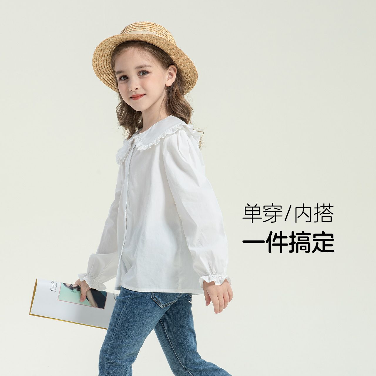 Zuoxi 女の子シャツ長袖子供トップスドールシャツ春と秋 2025 新しい女の子純綿白シャツ子供服