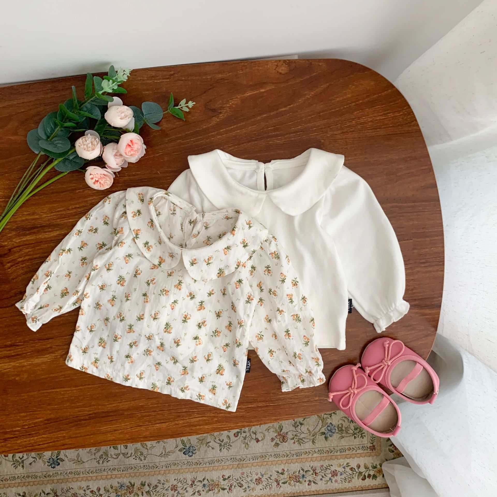 韓国の春と秋の女の子の赤ちゃんの柔らかい花の底のシャツins長袖の子供の襟のゆったりしているかわいい子供のシャツ