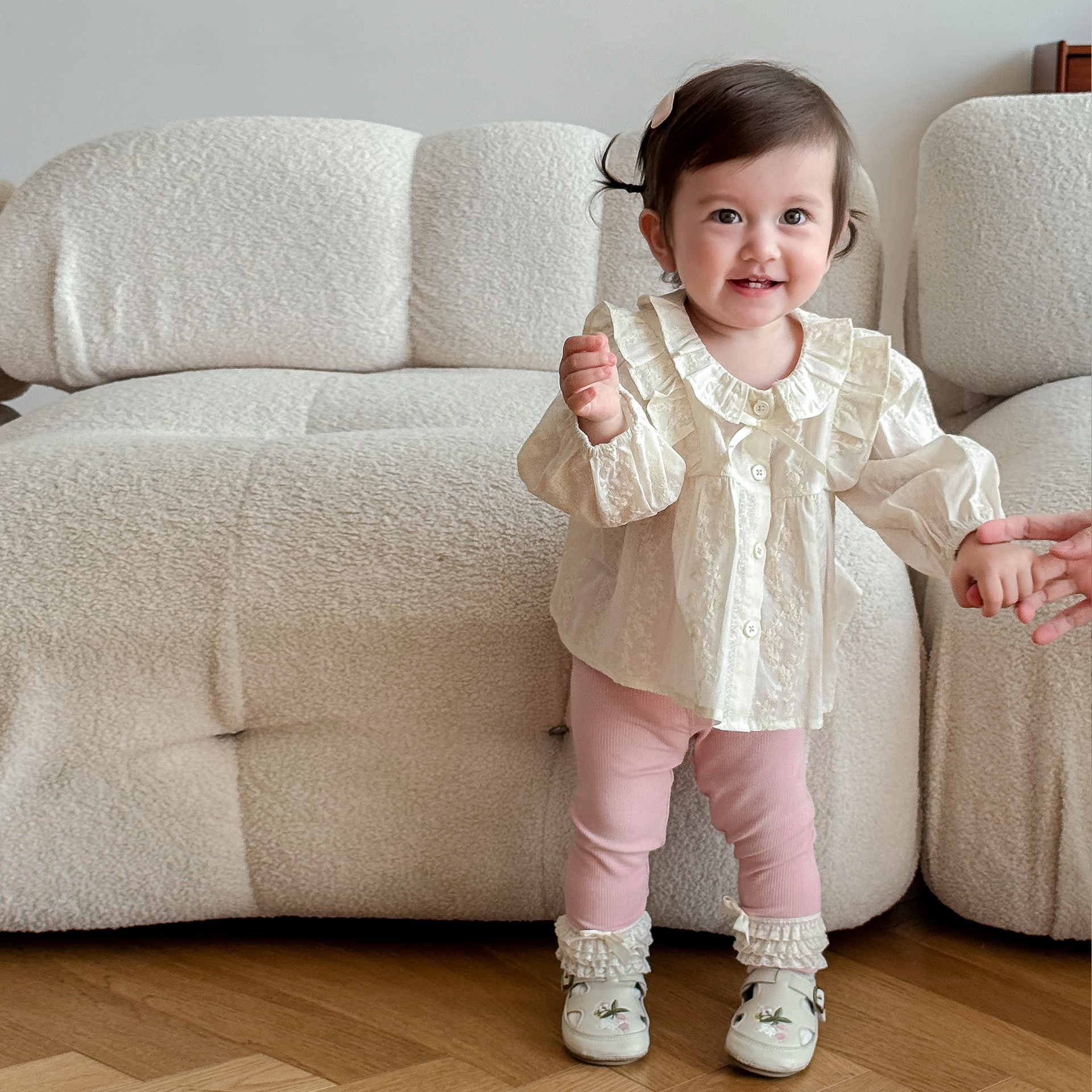 新しい純綿女の子シャツシャツレース長袖人形襟ベビーシャツベビー春と秋スタイル底