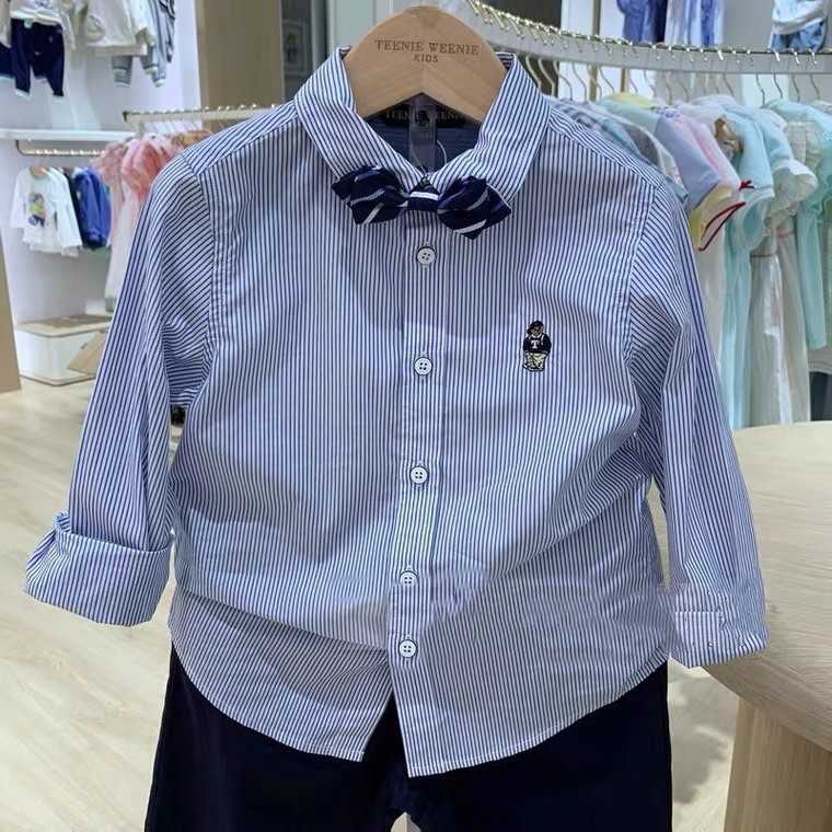 リトルベア子供服男の子と女の子のための 2 色ラペル長袖シャツ TTYW255173I サポートドロップシッピング