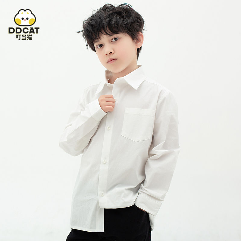 刺された猫の子供の純粋な白いシャツの男の子の綿のシャツの長い半袖の中学生の学校の学校の服装の代の大きい卸売り