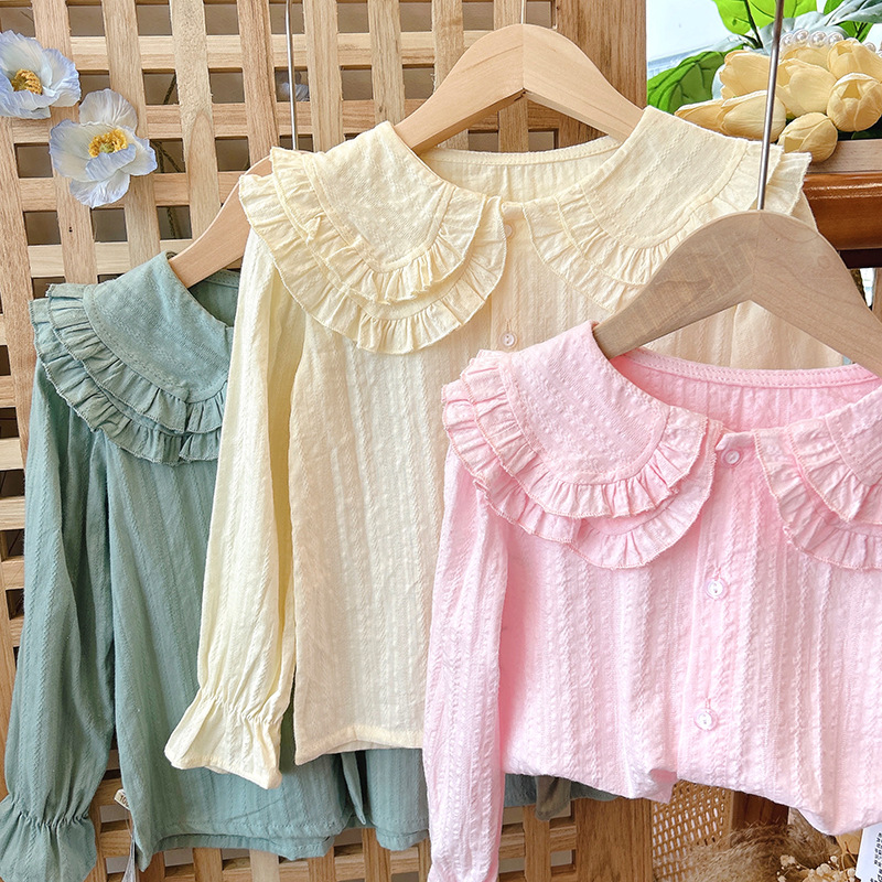 女の子の新しい純綿女の子シャツシャツ春と秋の長袖人形襟人形シャツベビーファッショナブルな韓国スタイル女の子
