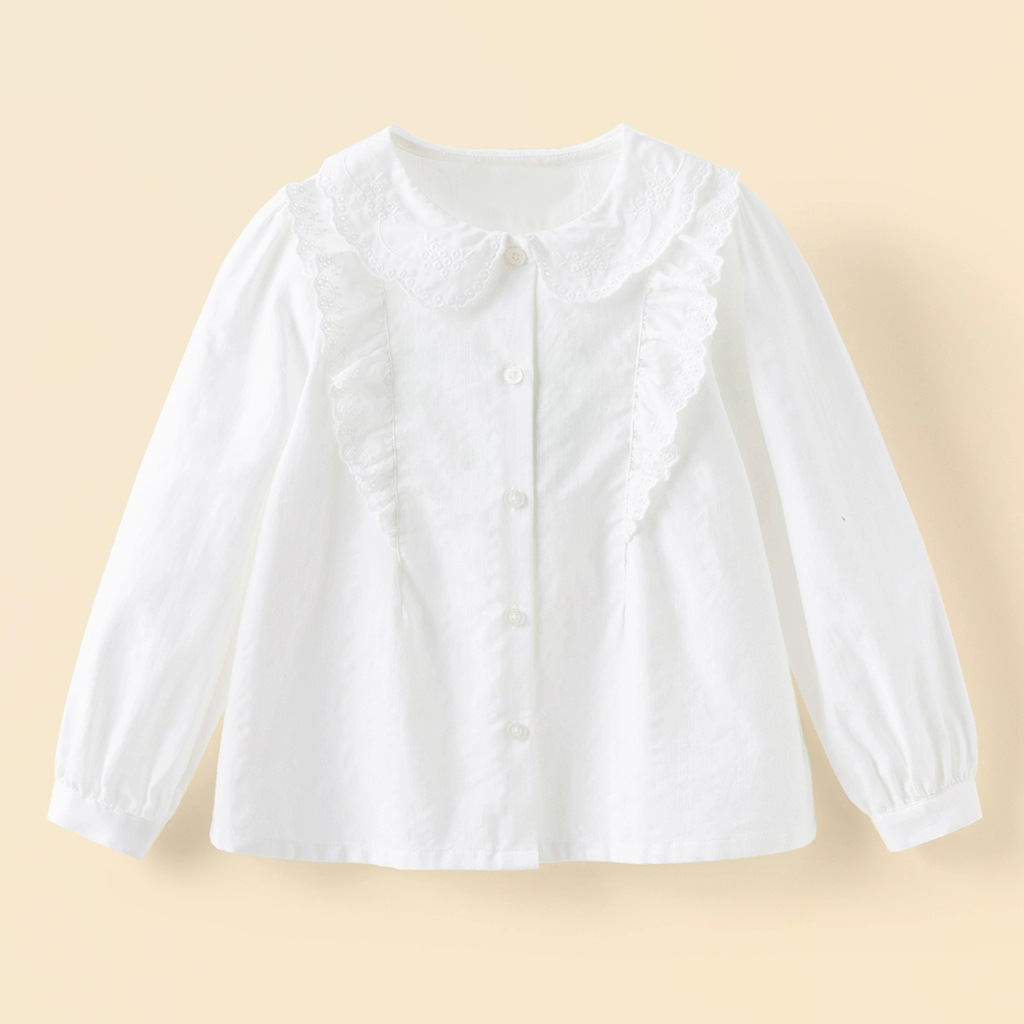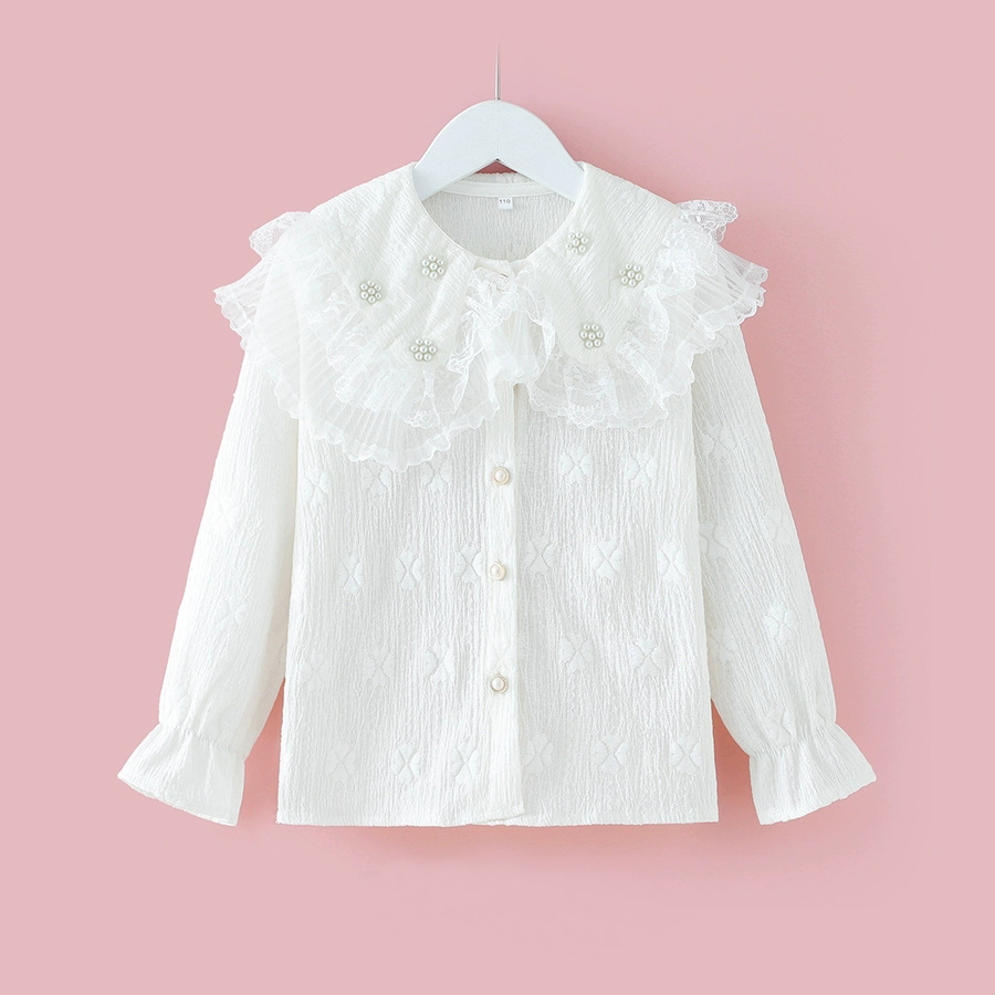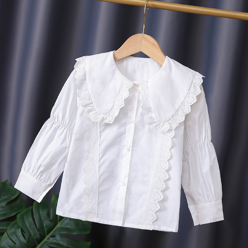 女の子人形襟シャツ長袖おしゃれな春と秋の新しい子供用白シャツ女の子プリンセストップ人形シャツ