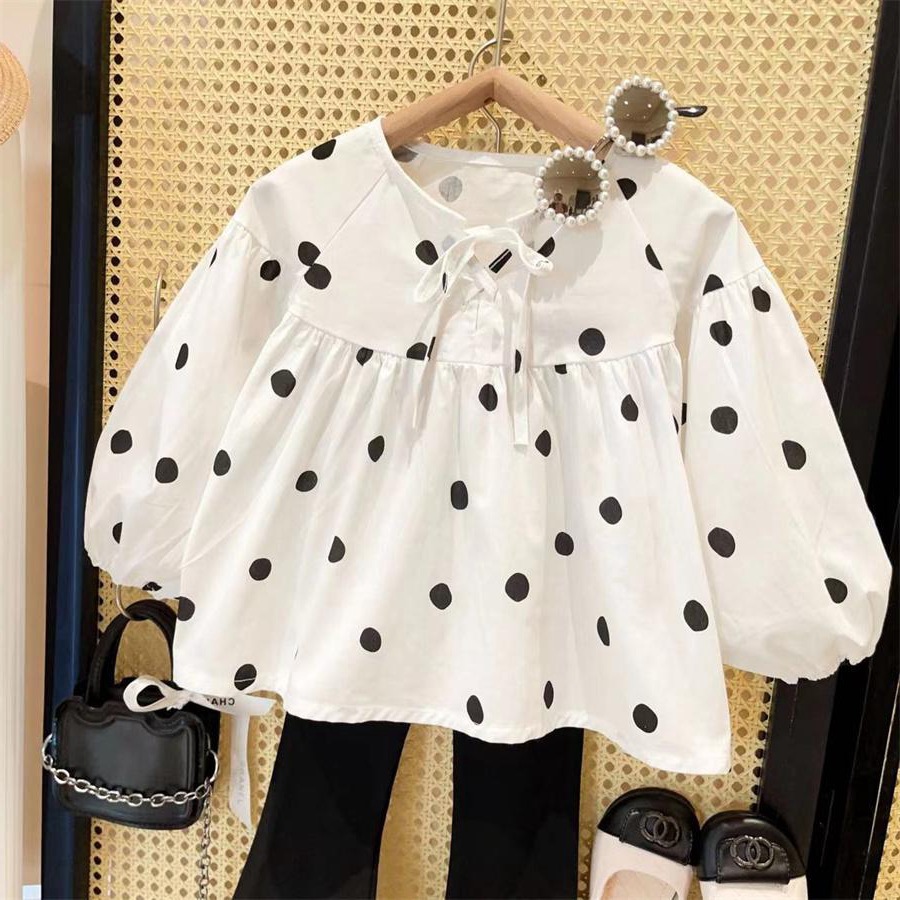 女の子のシャツ2023春秋服の新型の女の子の洋気のおしゃれな女性の赤ちゃんの波点の子供の上着