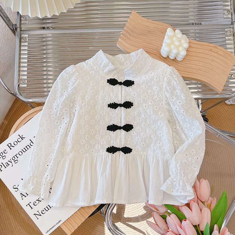 女の子長袖シャツ春秋子供シャツカーディガン女の子スイートコットントップス白いベビーシャツ中大児向け