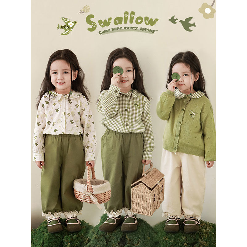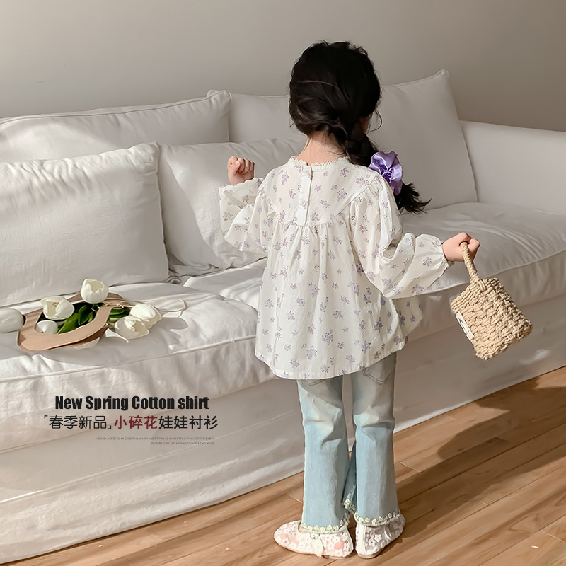 韓国系子供服2025春新作女の子森系小花刺繍シャツおしゃれ洋気長袖ベビーシャツ