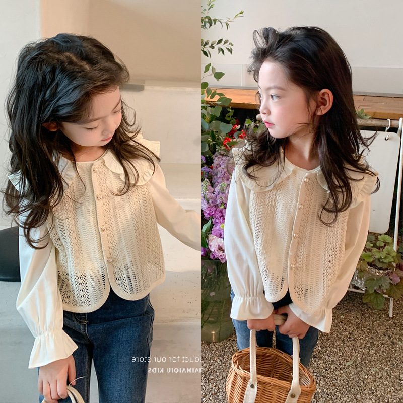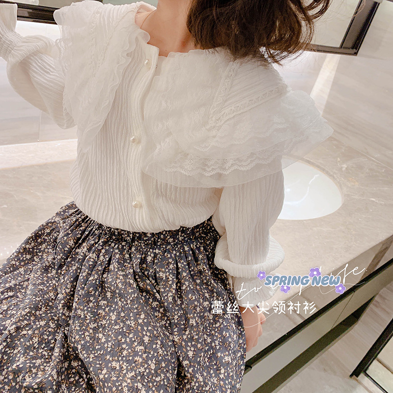 2022年の春の新型の女の子の子供の襟の白いシャツの大きい襟の子供の長袖の韓国の子供服の上着のファッション