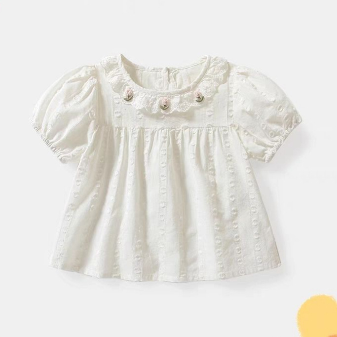 女の子の夏服シャツ、ベビー・子供向け、トレンディな韓国風ジャカード刺繍入り、可愛いシャツ、ベビーシャツ、幼児・子供向け