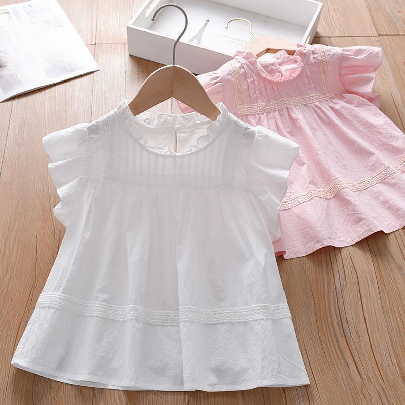女の子の袖の子供のシャツの夏の新型の洋気の子供の純綿のシャツの赤ちゃんの甘い上着の王女のシャツは薄いです。
