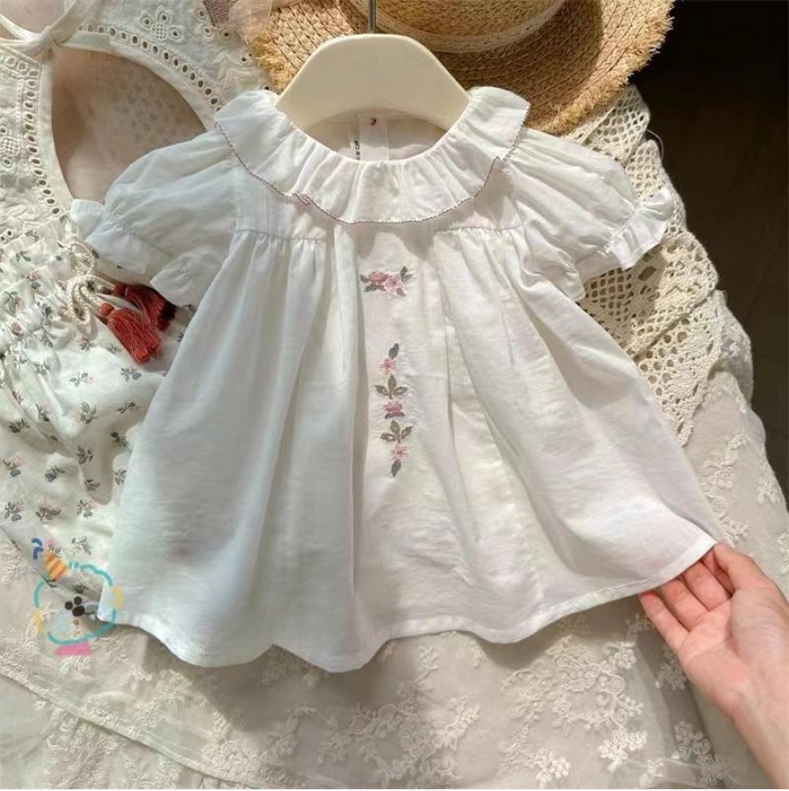 韩国女の子半袖シャツ2023夏服新品子供刺繍シャツ女の赤ちゃんかわいい子供シャツ上着