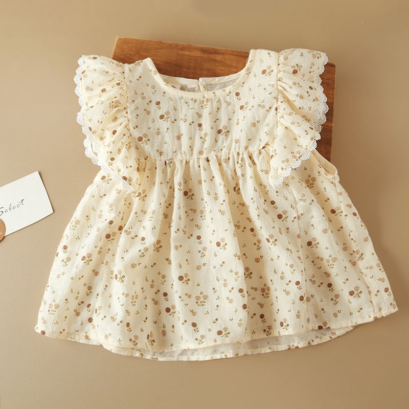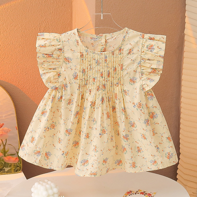 女の赤ちゃん薄いシャツトップス女の赤ちゃん夏服 2025 新しい半袖女の子甘い小さな花柄ベビードールシャツ