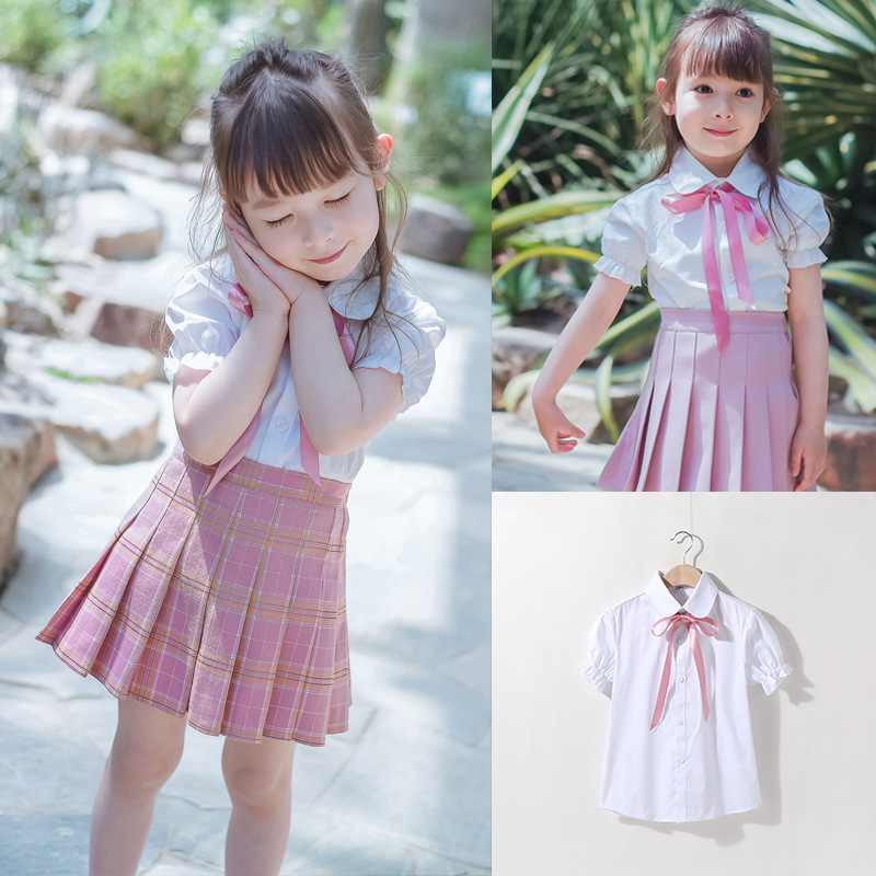 女の子のシャツ2022春の新型韓国版子供の洋気蝶結びは子供のシャツの上着の白いシャツを持っています。