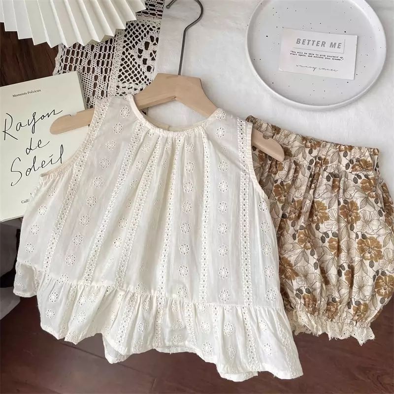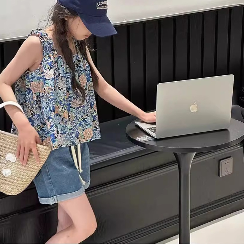 韓国子供服 女の子 ドールシャツ 夏休み風トップス 2025夏新作 子供服 女の子 花柄キャミソール