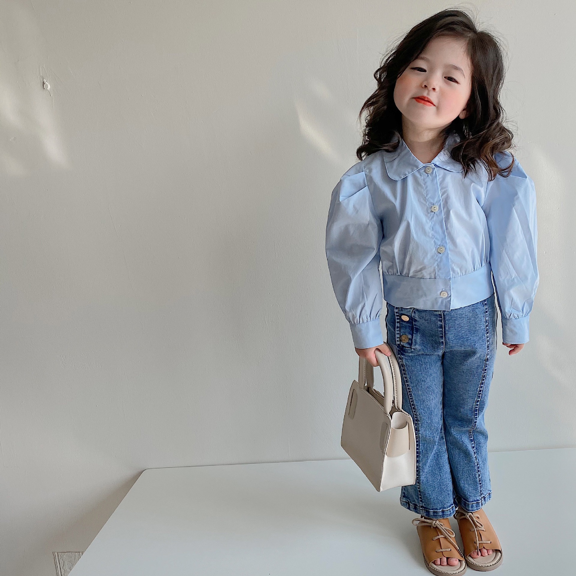 長袖子供シャツ2024春子供服大きな襟付き女の子シャツ韓国風女児ベビーシャツトップス流行