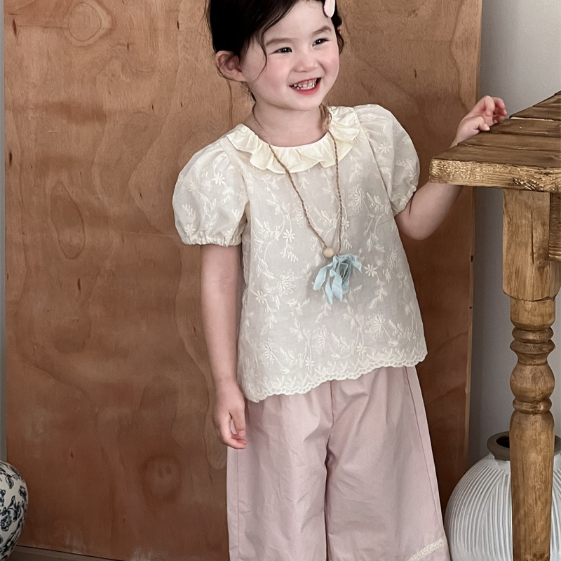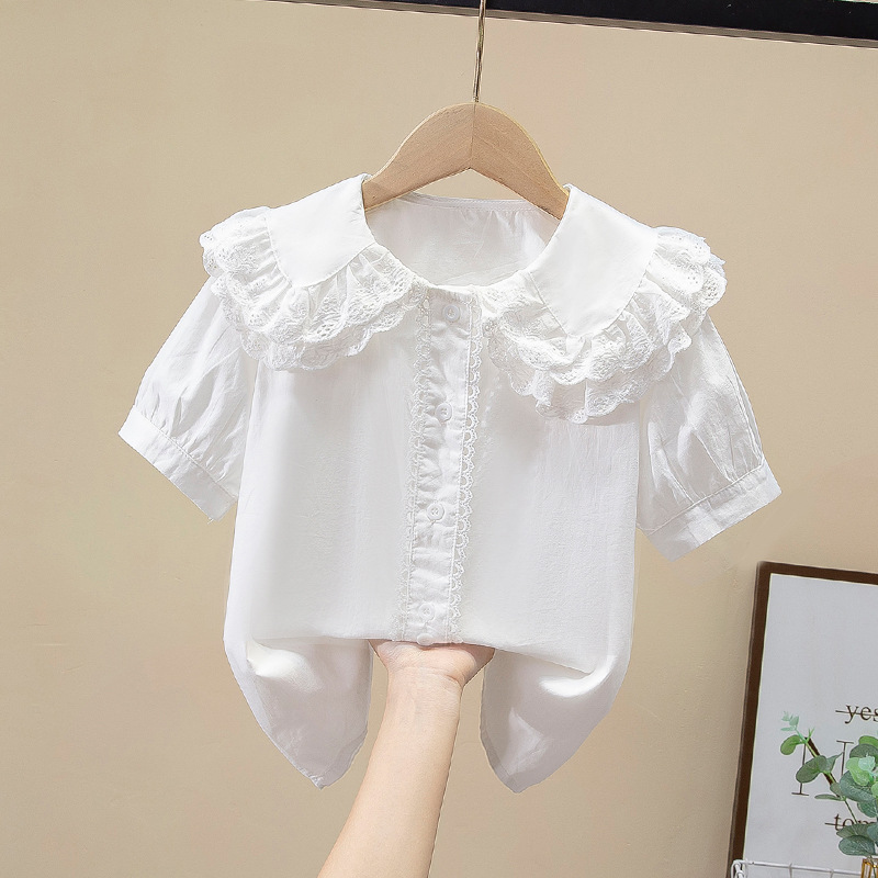 【在庫あり】女の子用フレンチ刺繍ドールシャツ、夏の新作子供用半袖シャツ