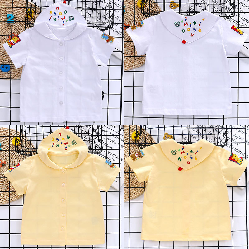 現物miki童装日系男女童熊鹿刺繍布アルファベット海軍襟半袖シャツtシャツ代発