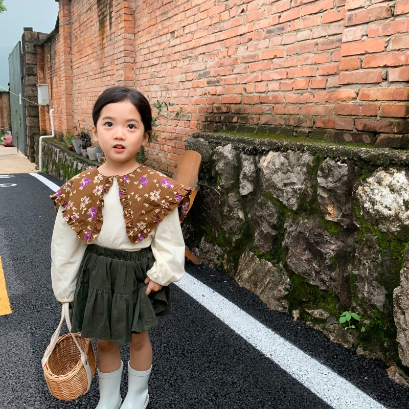 韓国の春と秋の女の子の赤ちゃんの柔らかい花の底のシャツins長袖の子供の襟のゆったりしているかわいい子供のシャツ