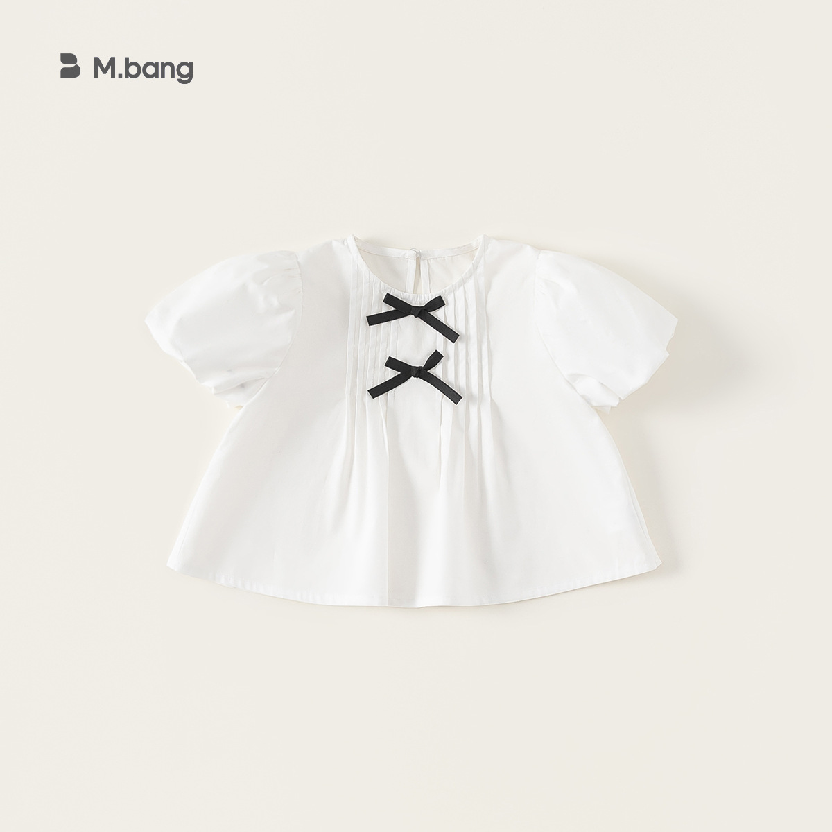 宥宝子供服の女の子の半袖の子供服のシャツ2025夏の新型の子供の洋風の蝶結びの上着の女の子の夏服