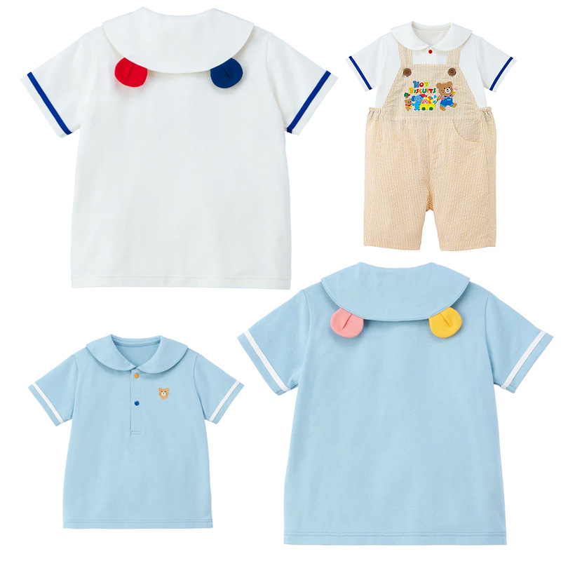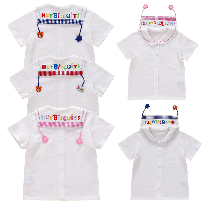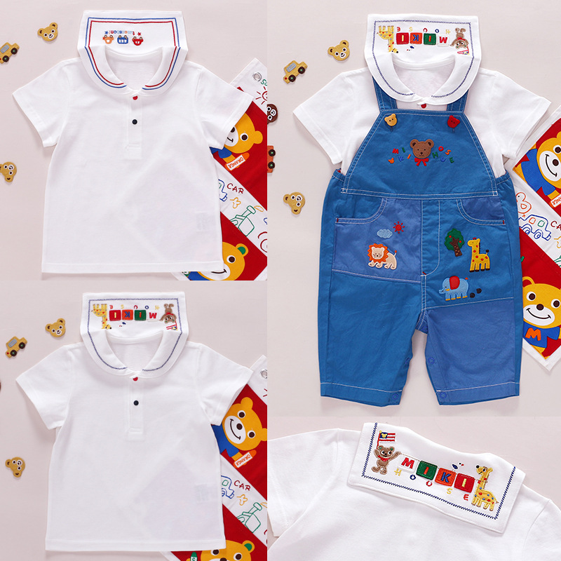 現品miki子供服男女童キャラクター熊海軍襟半袖シャツ子供シャツショートt代発