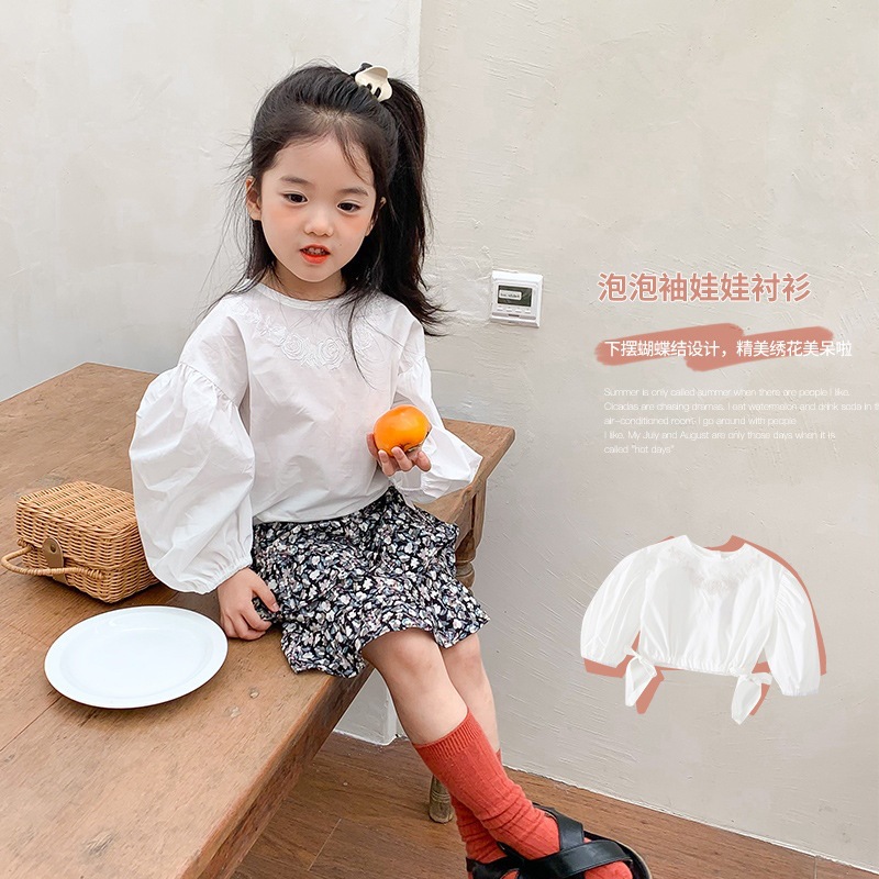 韓国の子供服春と秋の新型子供刺繍上着の子供服の韓国版の女の子の泡の袖の子供服のシャツ