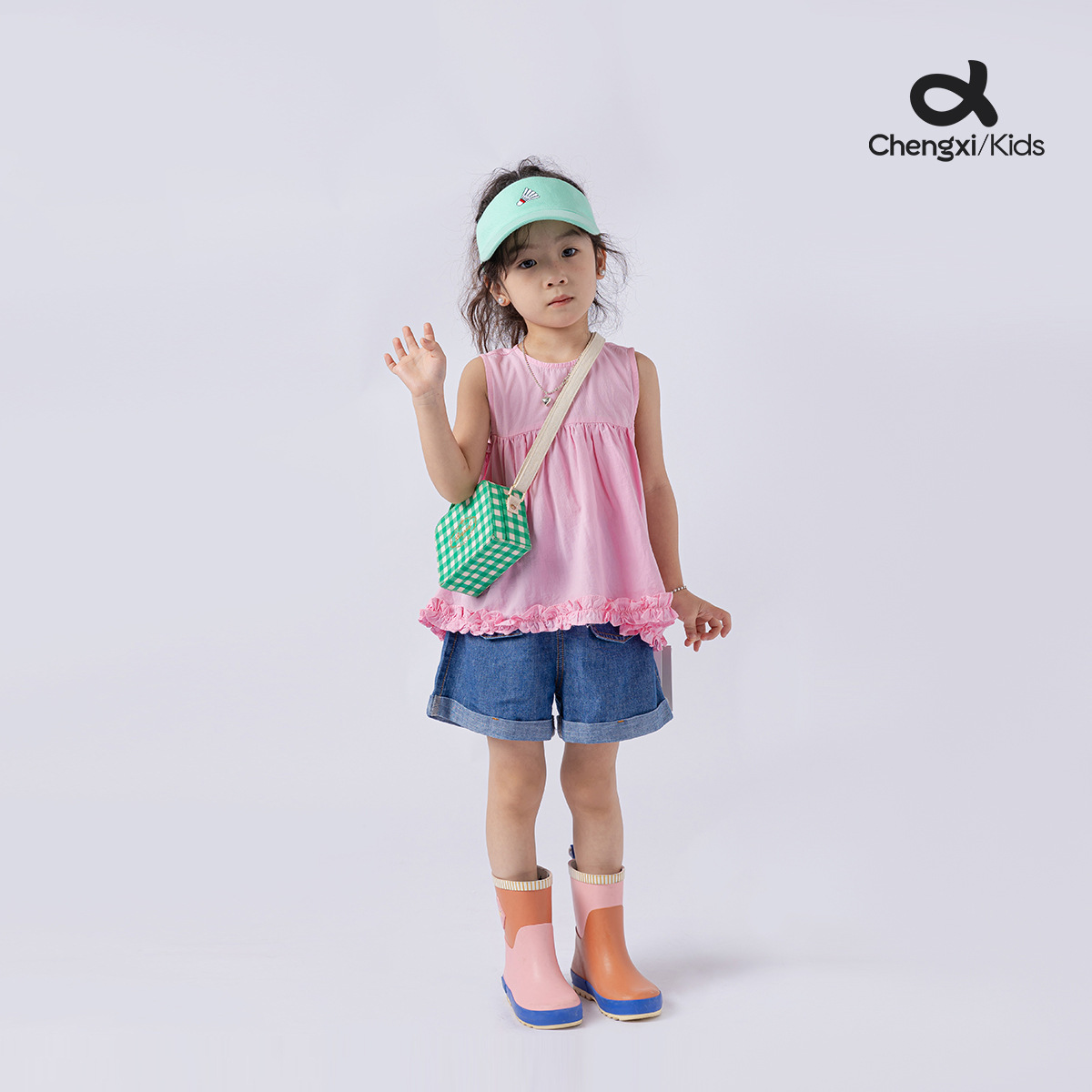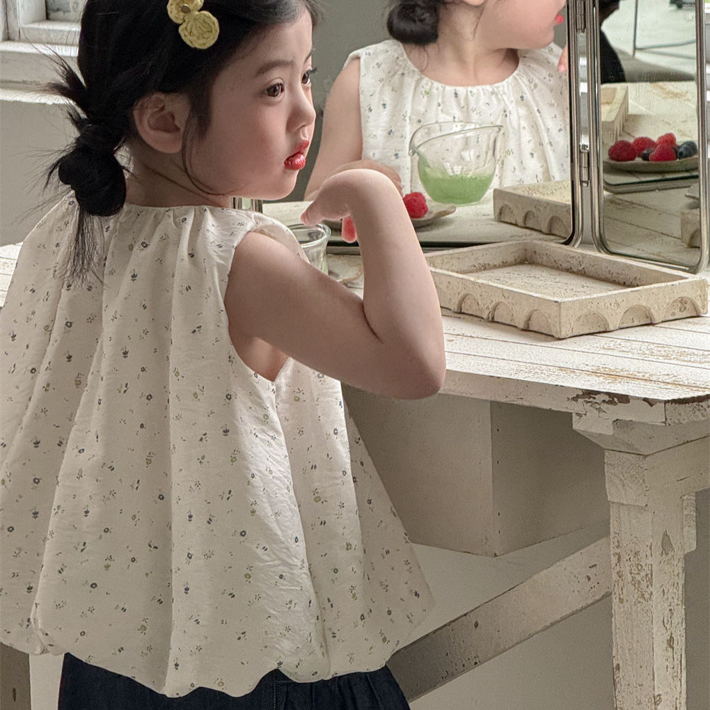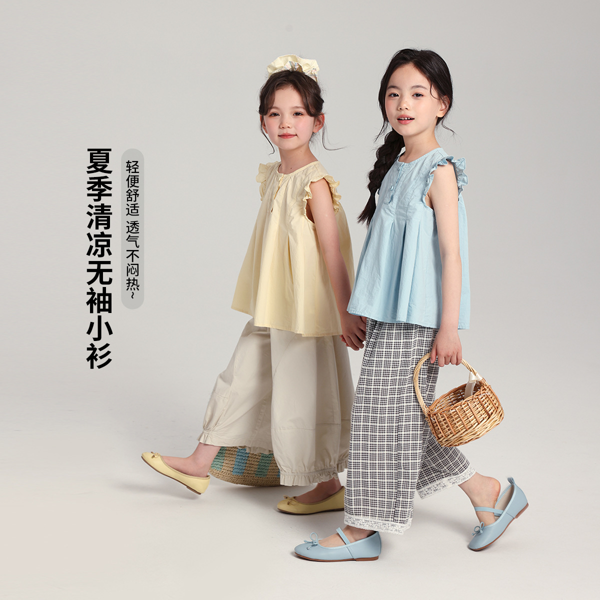 プリンハル2025夏の新型子供用シャツの涼しげなノースリーブの女の子用シャツの純綿の通気性