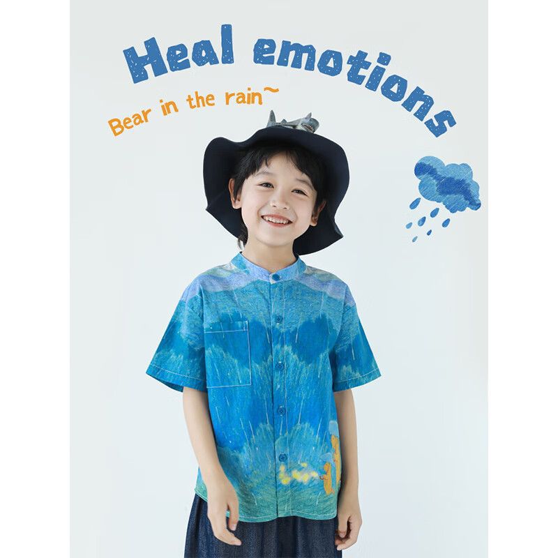 吾里卜一男児2024新半袖シャツ夏流行雨中熊軽薄ゆるい子供シャツ