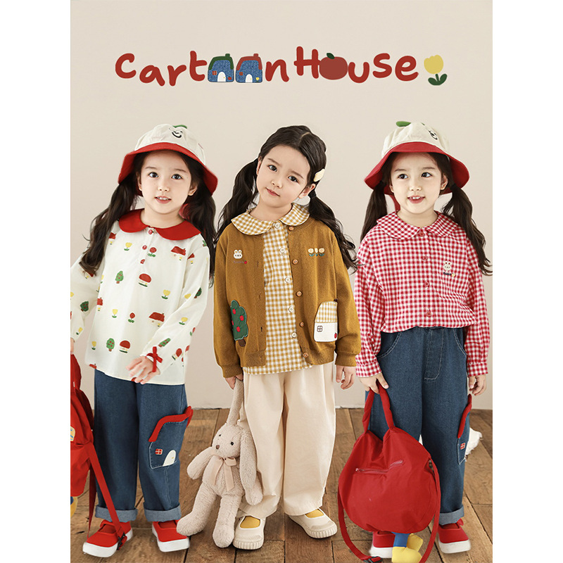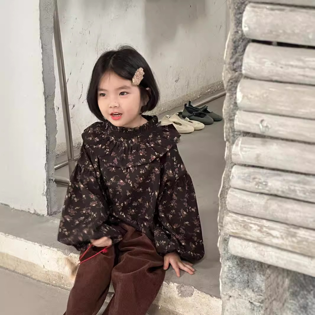 子供の上着2024秋の新商品韓国の子供服のレトロな子供の襟のゆったりした長袖の花の女の子の子供のシャツ