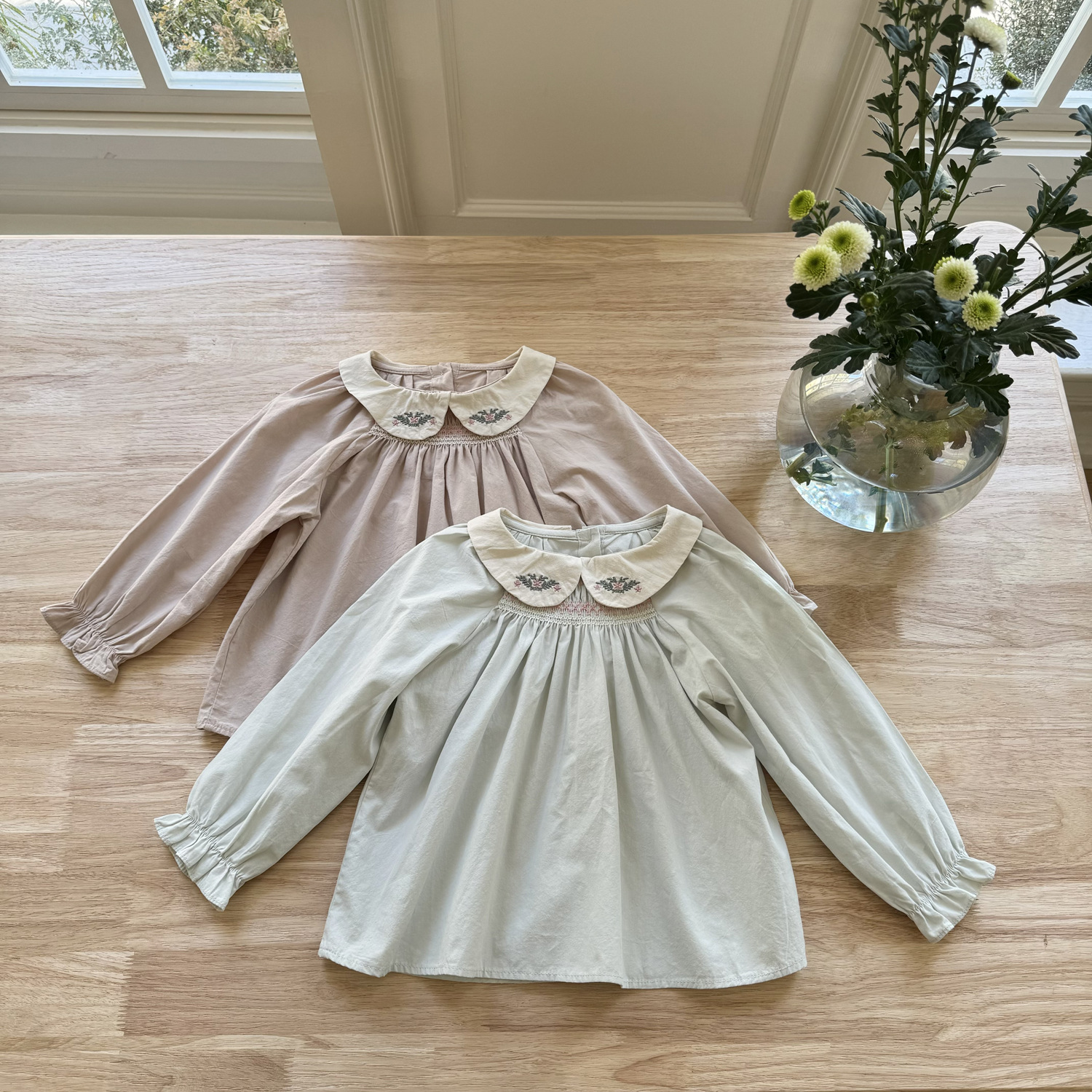 2025春の新型子供服韓国の女の子の花の襟の長袖のシャツの子供の襟の甘いシャツ