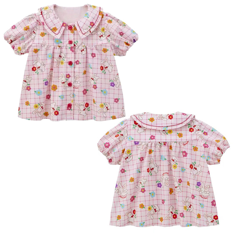 シャツ夏の女の子漫画バニーフラワープリント人形襟半袖シャツ Tシャツドロップシッピング