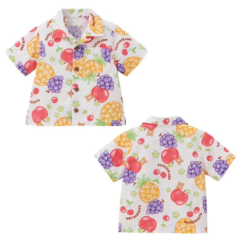 在庫あり 子供用シャツ 夏の新作 男の子と女の子向け 漫画風 くしゃくしゃクマとフルーツプリント 半袖シャツ